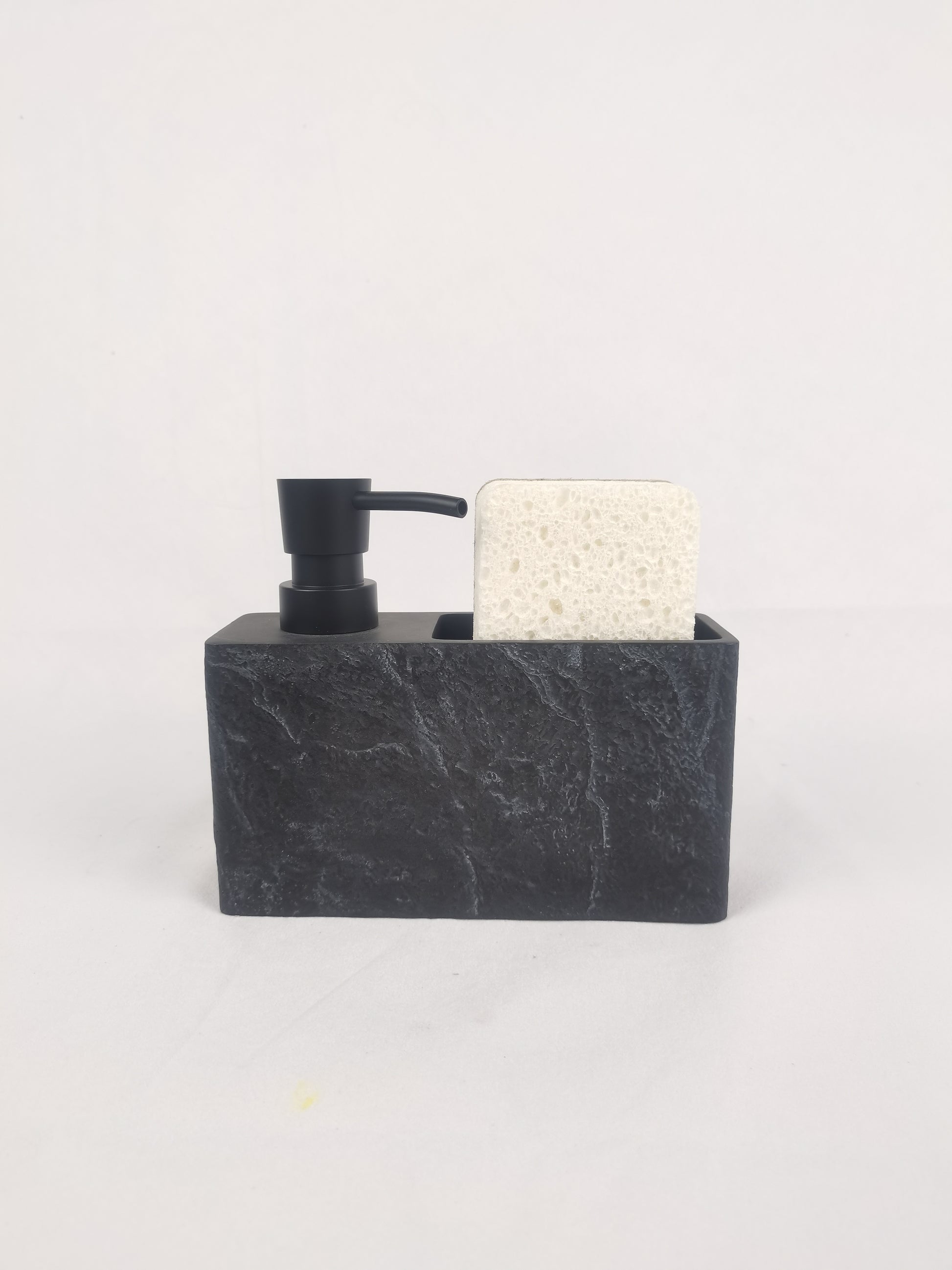 Inspired by architectural concrete, coarse-grained marble and gray-toned resin shape functional containers.